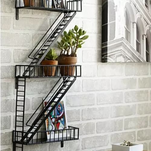 click to enlargeFire Escape Shelf $129A great gift for city-lovers and apartment-dwellers, these clever shelves are in the form of a fire escape. While big city landlords may frown upon placing potted plants or other objects on the real deal due to fire codes (it's actually illegal in New York City), there's certainly no restriction on what you populate this clever shelving unit with: houseplants, books, candles, framed photographs and art, or tchotchkes of all shapes and sizes. Just don't expect to fit a chair or BBQ grill on the three horizontal platforms of this miniature, wall-mountable emergency exit. Bound to thrill apartment-dwelling urbanites and lovers of all things big city.Quantity: Add to Cart
